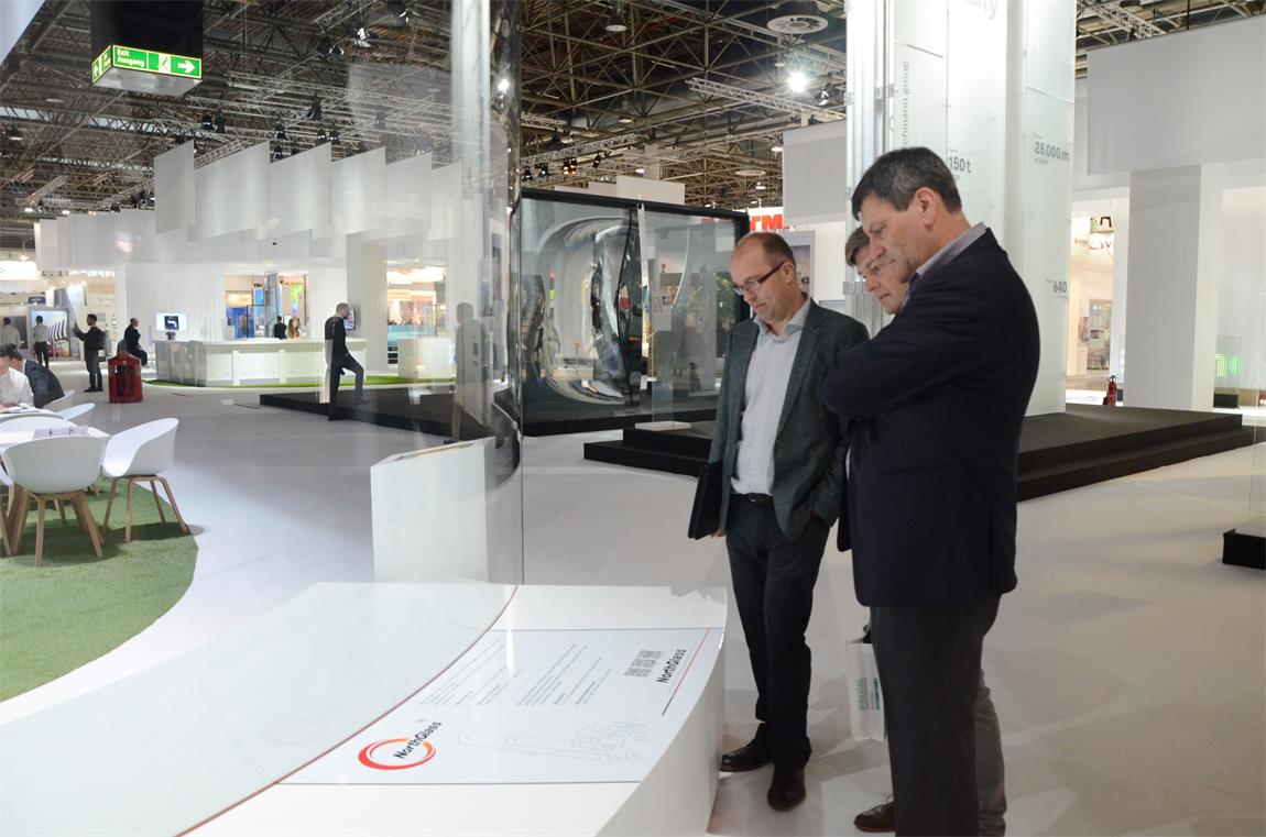 北玻,作為入選的中國企業(yè),展出了這塊由天津玻璃公司帶來的8米超大弧長夾層彎鋼化玻璃。“這次展會很成功,展出效果超出我的預(yù)期。”歐洲業(yè)內(nèi)知名人士評價到。說到這塊玻璃,北玻股份公司副總裁、天津玻璃公司總經(jīng)理高琦滿滿的自豪:“這次展會對于天津玻璃公司來說,是個契機。我們是一個創(chuàng)新型的公司,這幾年一直致力于新產(chǎn)品研發(fā),我們的玻璃無論從創(chuàng)新還是從產(chǎn)品質(zhì)量來說都是無與倫比的,北玻此次的展出旨在能夠讓歐洲企業(yè)了解北玻品牌”。